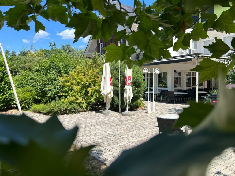 Unser Garten bietet Raum für Pausen, Gespräche oder Kundentermine im Freien.